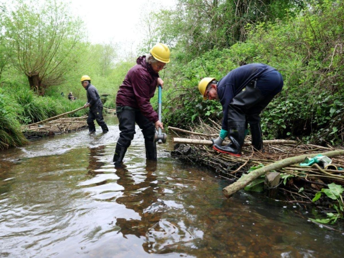 Dans le bras d’un ruisseau près de Leicester, dans le centre de l’Angleterre, six bénévoles en salopettes imperméables et bottes aux pieds s’activent pour renforcer des structures en fagots de bois. L’objectif: ralentir l’écoulement de l’eau et réduire le risque d’inondation.