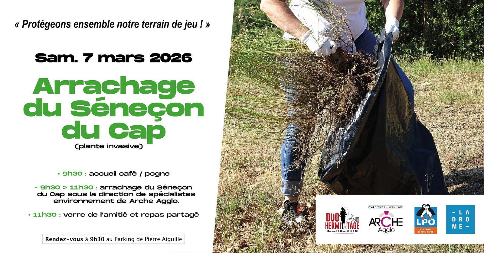La communauté de communes Arche Agglo organise une matinée d’arrachage du Séneçon du Cap, une plante exotique envahissante, ce samedi 7 mars sur le site de Pierre Aiguille (au-dessus de Tain l’Hermitage).[Lire la Suite]