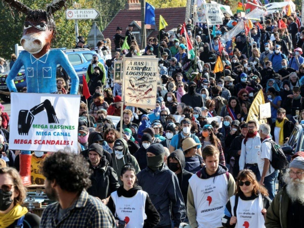 La manifestation, première mobilisation d’une telle ampleur contre ce canal, se tient dans le cadre d’un week-end militant à l’initiative de plusieurs collectifs dont Les Soulèvements de la Seine (une ramification des Soulèvements de la Terre), Extinction Rebellion et Mega Canal Non Merci.