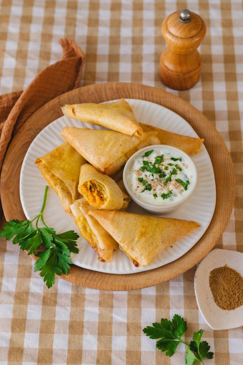 Une recette de samossas végétariens aux carottes, cumin et sauce yaourt